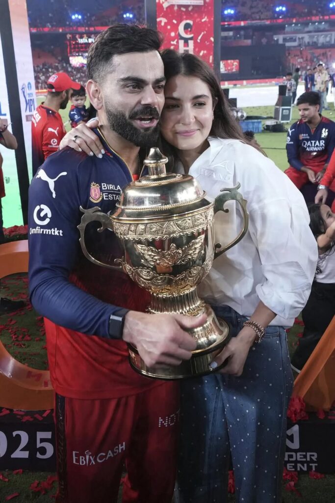 As he kissed the trophy amidst a sea of fans donning his No. 18 jersey, Kohli’s emotional embrace with wife Anushka Sharma and his leap into commentator Ravi Shastri’s arms became iconic moments of the season.